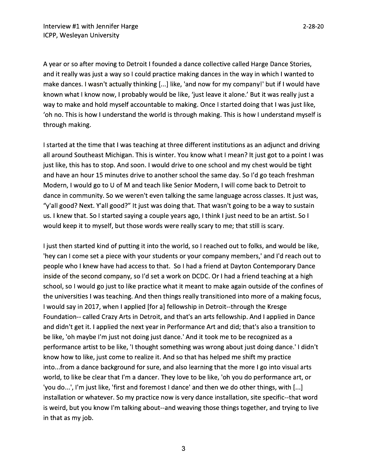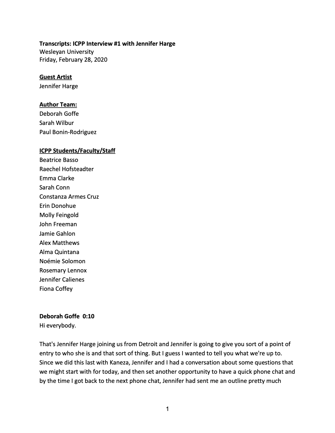 Partial transcript from an Interview with ICPP and Jennifer Harge, Friday, February 28, 2020. Download PDF.